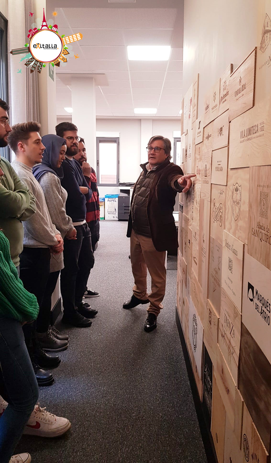 Quince alumnos del último curso del Ciclo Formativo Grado Superior de Formación Profesional de Comercio Internacional del Instituto de Educación Secundaria (IES) Federico García Lorca de Albacete, junto a su profesor Javier Alcaraz, han hecho una visita a las instalaciones de Exitalia International Consulting en Albacete. Durante la misma han podido aprender, de primera mano, la actividad de esta empresa albaceteña que en la actualidad es el referente nacional en marketing internacional y en la promoción para bodegas de toda España. Los alumnos conocieron insitu y en tiempo real, el trabajo de consultoría que realizan las personas de Exitalia y que permite que los vinos de nuestro país tengan una mejor visibilidad, un mejor posicionamiento y reconocimiento de calidad, consiguiendo, de esta manera, una mayor penetración y expansión, de los mismos, en los mercados exteriores. Exitalia trabaja en la estrategia internacional de algunas de las bodegas más prestigiosas e importantes de España como Pago de Carraovejas, Marqués del Atrio, Grupo Perelada-Chivite, Arzuaga Navarro, Murviedro, Hermanos Pérez Pascuas (Viña Pedrosa), Remírez de Ganuza, Casa Rojo o Bodegas Ayuso, entre muchas otras.